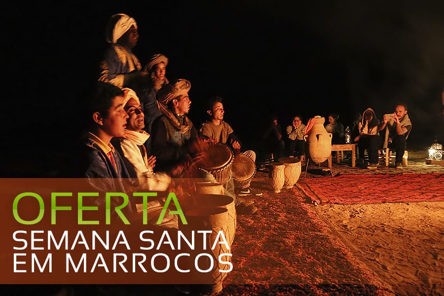 e, os simpáticos macacos. Segue a Midelt para almoço, esta cidade é impressionante por suas montanhas com 1488 metros de altitude e, Erfoud onde se realiza o passeio com 4×4 direto para o paraíso de Merzouga de encontro as dunas do deserto intermináveis de Erg Chebbi, agora para as impressionantes dunas de Erg Chebbi. Tempo para descansar no hotel, após passeio de camelo e, assistir o pôr do sol. À noite realiza-se o passeio no meio das dunas até o jantar que será em tendas nômades típicas.